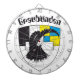 The personalized dart board will be perfect for my daughter's game room in their new house! It was packaged well and arrived with no damage. It is rather sturdy. Because of the weight, I am going to recommend they use an anchor bolt to secure it or nail into a stud behind the drywall. The printing turned out exactly like I saw it on the preview.