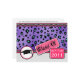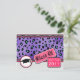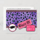 A graduation class of 2011 invite announcement featuring a purple leopard print design on front accented with black and pink trim with small white polka dots. "Class of 2011" designs with graduation hat at bottom. Opposite side is plain with customizable text.