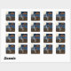 Halloween sticker with mummy sitting on coffin in the graveyard at night with a full moon. Perfect for treat bags or envelope seals for cards or invitations. Coordinating invitation available in store.