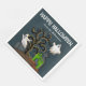 These spooky and cute Halloween party napkins feature a graveyard scene. An image of a graveyard at night is printed along the bottom with two flying ghosts and a zombie trying to climb out of his grave. You can see his yucky green arms coming out of the ground. A sinister looking tree is pictured in the background. The image is accented with faux gold glitter.