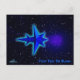 A simple, blue-toned 3D fractal image resembling a stylized spaceship superimposed on a starry background. Concentric rings (gravity waves?) emanate from the spacecraft into the seemingly empty vacuum of space. A light blue aura surrounds the spacecraft, perhaps the result faster-than-light travel. Add your own text.