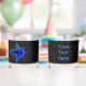A simple, blue-toned 3D fractal image resembling a stylized spaceship superimposed on a starry background. Concentric rings (gravity waves?) emanate from the spacecraft into the seemingly empty vacuum of space. A light blue aura surrounds the spacecraft, perhaps the result faster-than-light travel. Customize By adding your own text on the reverse side.