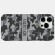 Customize this gray camouflage iPhone 16 pro max case with your name in a trendy modern CAP font in dark gray on light gray. It's masculine and perfect for your favorite military, hunting, country or outdoorsman!