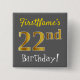 Gray, Faux Gold 22nd Birthday, With Custom Name 2 Inch Square Button