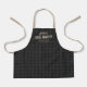 Custom kitchen apron feature classic dark gray and black gingham check with light gray personalized text of future grill master and name . Great personalized bbq apron for little men. These father son matching grill aprons make a great gift for Father's Day, Grandparent's Day, birthdays and other special occasions.