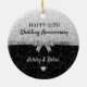 Elegant gray glitter and black floral damask with gray ribbon and silver heart. 25th wedding anniversary
