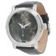 Vintage men's watch with black leather strap v.boscher gray ink design