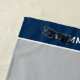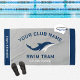 Sleek gray and navy give this swim team beach towel a polished, modern look. Features editable club name, Swim Team text, mascot name, and a dolphin logo placeholder that can be replaced with your team's own graphic. The swimmer's name runs vertically along the side for quick identification. All text and colors are fully customizable to match team branding. Perfect for meets, practice, and team fundraising.