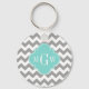 Gray Wht Chevron Aqua Quatrefoil 3 Monogram Keychain