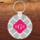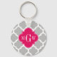 Gray Wht Moroccan #5 Raspberry 3 Initial Monogram Keychain