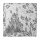 Grayscale Fairytale Castle with Ornate Vine Border Tile