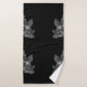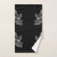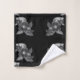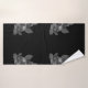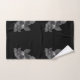 This artwork features a repeat pattern of grayscale floral designs set against a deep black background, creating a vibrant and elegant bathroom bath towel set.
