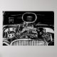 GRAYSCALE PHOTOGRAPHY OF VINTAGE CAR ENGINE POSTER