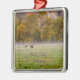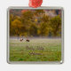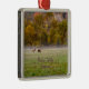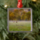 Ornament souvenir featuring an Elk couple graze a field on a chilly autumn fall season morning with some lingering fog. The large bull elk eats some grass while the female cow elk looks on. This is in Boxley Valley, Arkansas, USA.