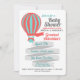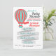 Greatest adventure baby shower invitation in soft gender neutral colours of red, teal and grey. Air transportation theme with hot air balloon in the clouds and banners and bunting flowing in the breeze. Sweet Greatest adventure theme for mommy to be and daddy to be, gender neutral baby shower invitation set.