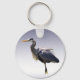 This keychain features the Great Blue Heron, a large wading bird in the heron family Ardeidae, common near the shores of open water and in wetlands. He is the largest North American heron. Notable features include slaty flight feathers, red-brown thighs, and a paired red-brown and black stripe up the flanks; the neck is rusty-grey, with black and white streaking down the front; the head is paler, with a nearly white face, and a pair of black plumes running from just above the eye to the back of the head. The feathers on the lower neck are long and plume-like. Because this is the breeding season, he also has plumes on the lower back and an orange bill. He is standing in shallow water and his feathers are backlit by the luminous sunlight.