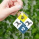 Great Dane Dog Silhouette & Paw Print Y&B Grid Keychain