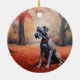 Great Dane in Autumn Leaves Fall Inspire Ceramic Ornament