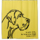 Personalized shower curtain featuring a striking Great Dane portrait drawing in bold yellow and black. Add your own custom text to make this curtain truly unique—perfect for dog lovers and anyone who wants a playful, elegant accent in their bathroom. Message on the front: “There are places where even a Great Dane won’t follow.” A quirky, stylish gift and a real conversation starter for any home.