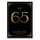 Great Gatsby Art Deco wedding table number cards with golden number 65 and changeable text, where you can add your names and wedding date, printed on black background