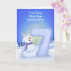 Bright winter joy fills this 7th birthday scene as a cheerful snowman shows off the tall snowy “7” sculpted just for your daughter’s big day. Soft, leaf-shaped trees frame the background, bringing a gentle seasonal touch to the artwork. The cool winter tones, playful textures, and warm expression create a sweet, memorable design perfect for great grandson who adore snowy magic. A lovely choice for anyone searching for a whimsical winter 7th birthday card for a special boy.