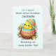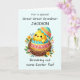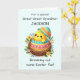 Make Easter extra special for your great-great-grandson with a personalized touch! This bright and cheerful card features a newly hatched chick nestled among colourful spring flowers, symbolizing joy and new beginnings. Set against a soft pastel teal background, this charming design comes to life even more when personalized with his name on the front. Inside, a heartfelt message shares love and warm Easter wishes, making this a treasured keepsake just for him.