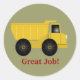 Great Job Dump Truck Sticker by Heard_ and 369. Text can be changed or removed. Background colour can be changed. Personalize it with your child's name!