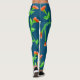 Modern leggings in ocean blue with colourful orange floral print. Personalize the background colour, or flowers are also removable.