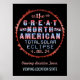 On April 8th 2024, a total solar eclipse will be visible across much of the United States - also known as the "Great North American Solar Eclipse." This pretty design has an outline of the eclipse with the words, "the Great North American Total Solar Eclipse 4.08.24." It's made in all red, white and blue on black. Have fun at your eclipse viewing party! Use the templates to personalize the rest of the text with your viewing location or any text you like.