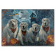 Unleash the spooky spirit with this eerie Halloween design featuring a pack of dogs under a dark, moonlit sky, surrounded by flying bats and glowing pumpkins. Perfect for those who love a touch of frightful fun with their furry friends!