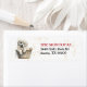 These return address labels have an image of an adorable white Great Pyrenees puppy dog sitting in a wicker basket. Your custom text is in red and black at the right. A subtle gold confetti background gives a bit of sparkle.