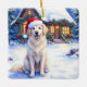 Great Pyrenees Snowy Mountain Lodge Santa Hat Ceramic Ornament