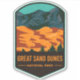 A vintage park badge design of Great Sand Dunes National Park and Preserve with huge dunes like Star Dune and Medano Creek in Colorado United States.