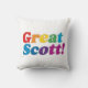 This t-shirt design features the iconic phrase "Great Scott!" in a fun, multi-colour, and slightly retro font. The letters are bold and pop with a vibrant rainbow of colours, giving the design a playful and eye-catching feel. The text is the central focus of the design, celebrating the famous movie quote with a simple yet dynamic style