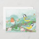 Great Tit Birds Singing on a Blossoming Tree Postcard