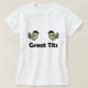 Great Tits are small perching birds that live throughout Asia and Europe. These funny t-shirts feature two Birdorable cute Great Tits across the chest. Suggestive silly fun for birders and tit fans!