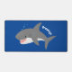 A happy, hungry great white shark is swimming in the ocean. Drawn in cute cartoon illustration style for a fun day!