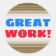 "GREAT WORK!"; Blue & Orange Stripes/Lines Pattern Classic Round Sticker