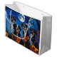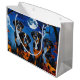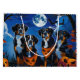 Unleash the spooky spirit with this eerie Halloween design featuring a pack of dogs under a dark, moonlit sky, surrounded by flying bats and glowing pumpkins. Perfect for those who love a touch of frightful fun with their furry friends!