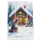 Greater Swiss Mountain Dog Snowy Cabin Santa Hat Medium Gift Bag