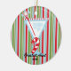 Give to your favourite Aunt or all of them this keepsake of all times! It's has a Christmas martini glass with a stirrer and peppermint candy coming out of the glass. There's a candy cane on the bottom. The background is a thin colourful striped background. Check out the other family member ornaments in our store. ©JW Illustrations