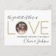 Announce the joyful news of your engagement and upcoming wedding with unique custom photo save the date postcards. The 2 pictures and all wording on this invitation template are simple to personalize. The magnetic back makes them easy for friends and family to display. (IMAGE PLACEMENT TIP: An easy way to centre a photo exactly how you want is to crop it before uploading to the Zazzle website.) The white, gold and black design features two pictures of the engaged couple, modern minimalist typography, and the word "LOVE" in faux gold foil as part of the phrase "the greatest of these is love" from the Corinthians Bible verse. Please note that gold is printed colour, not metallic foil. This stylish announcement note card is an elegant way to inform friends and family of your upcoming special day celebration. Congratulations to the bride and groom!
