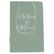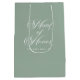 White and sage green Maid of Honour elegant script calligraphy gift bag.