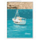 White yacht on background of blue sea in Greece, painting effect.