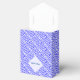 Tent favour box has the Greek flag and the word, GREECE, below in blue, tiled diagonally for an artistic look. The flag shows blue and white stripes with a blue and white cross in the upper right area. A white fractal of squiggly squares holds a spot for a name to personalize for your party or special event. Fun for Greek family reunions, travel groups, clubs, and sharing your love and pride in your heritage, ancestry and culture. Great for celebrating Oxi Day.