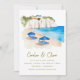 Set the tone for your dream destination wedding with this stunning Santorini-inspired wedding invitation. Featuring a soft watercolor illustration of a cliffside beach, iconic whitewashed buildings, and deep blue umbrellas, this design perfectly captures the essence of Greek island romance. Ideal for coastal weddings, summer celebrations, or Mediterranean getaways.