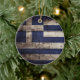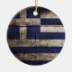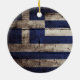 Greece Flag on Old Wood Grain Ceramic Ornament