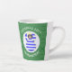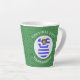 Latte mug for Christmas has a black haired angel dressed in the flag of Greece. The angel flies in the centre of a white fractal of squiggly squares set in the centre of a green fractal of squiggly squares. Add your name, or the name of someone else, if giving as a gift, to personalize. Customize by changing the ?? to a year of your choice. Designed for your Greek Christmas decor this holiday season. Makes a lovely Christmas gift, too. Change the font and/or colour of the name, holiday, and year by using the "edit design" option. Angel shows on two sides of latte mug