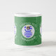 Jumbo coffee mug to help you celebrate Christmas with this black haired angel dressed in the Flag of Greece. The Greek angel flies in the centre of a white, fractal, circle of squiggly squares set in a background of green squiggly squares. Add your name, or the name of someone else, if giving as a gift, to personalize. Customize by changing the ?? to a year of your choice to create a mug. Designed to augment your Christmas decor this holiday season. Design shows on three sides. Change the font and/or colour of the name, holiday or year by using the "edit design" option.