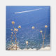 Who does not long to be on a Greek Island vacation on a hot summer day when the sun is sparkling on the blue Mediterranean Sea? In this stunning photo image, the sea off the coast of Rhodes is the deepest blue, with the white wake of a speedboat cutting across the waves. The photo was taken from the top of a cliff at Lindos, with pretty wildflowers growing along the edge.